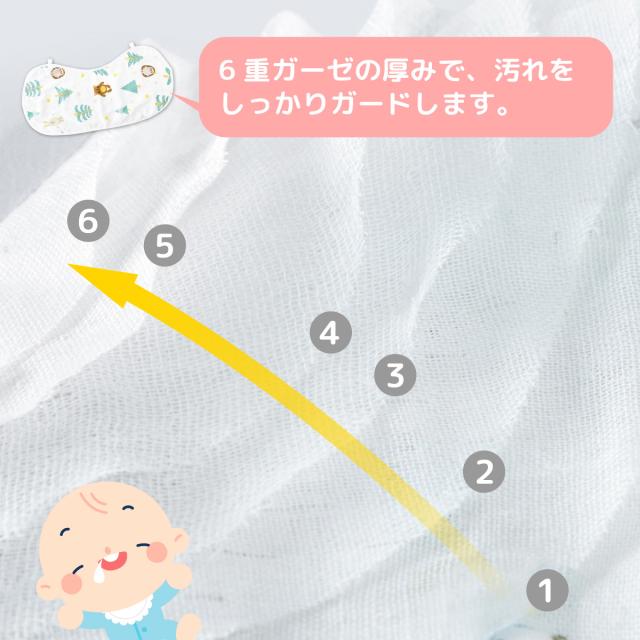 6重ガーゼの厚みで、汚れをしっかりガードします。