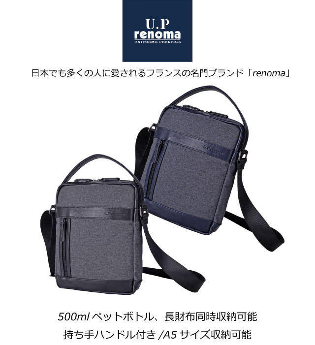 斜めがけバッグ メンズ U.P renoma レノマ タテ型ショルダーバッグ 20106 A5サイズ 軽量 斜めがけ 斜め掛けバッグ 軽い バッグ ショルダーバック メンズバッグ パパ 父 ミニショルダー 縦型 ショルダー 男性用 メンズバック 黒 紺 ネイビー旅行 大人 かっこいい 消臭