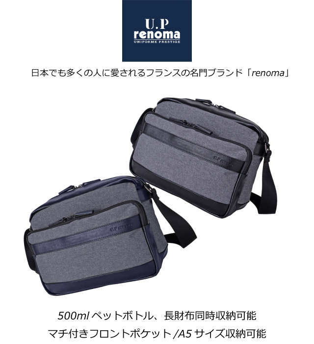 斜めがけバッグ メンズ U.P renoma レノマ ヨコ型ショルダーバッグ 20107 A5サイズ 軽量 斜めがけ 斜め掛けバッグ 軽い バッグ ショルダーバック メンズバッグ パパ 父 ミニショルダー 横型 ショルダー 男性用 メンズバック 黒 紺 ネイビー旅行 大人 かっこいい 消臭