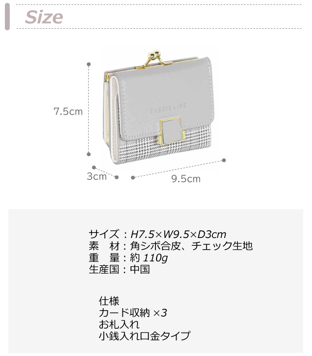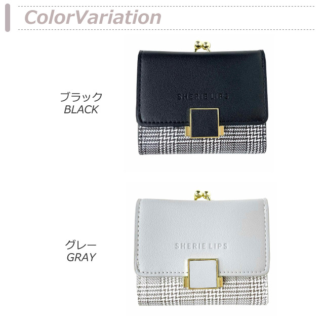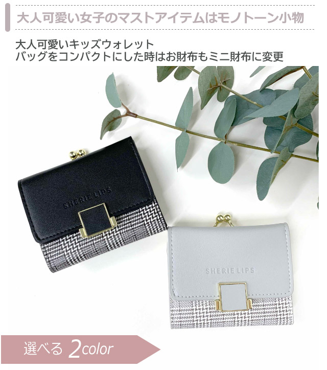 【ラッピング袋無料】財布 女の子 中学生 Sherie Lips スクエアグレン ミニ口金財布 wbg-305 三つ折り財布 子供 女子キッズ 財布 コンパクト 小さめ かわいい 可愛い 小学生 高学年 高校生 女の子 プレゼント 3つ折り財布 がま口 大人 レディース財布 チェック 大人っぽい