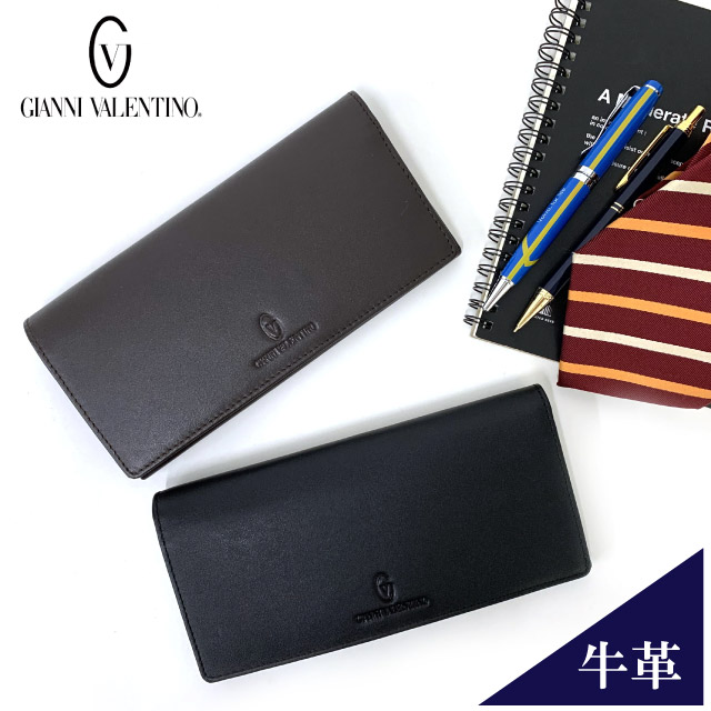 かぶせ長財布 メンズ GIANNI VALENTINO 長財布 61g521 薄マチ 長サイフ 財布 メンズ ブランド 革 人気 レザー ロングウォレット wallet なが財布 長さいふ 二つ折り 折り財布 プレゼント ギフト クリスマス xmas 高校生 父の日 実用的 高級感 黒 茶 メンズ財布