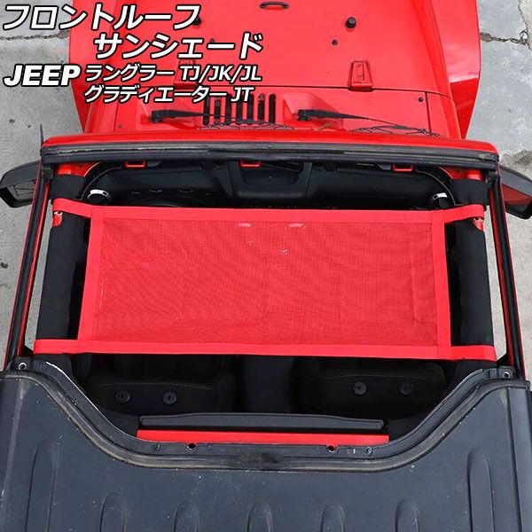 フロントルーフサンシェード ジープ ラングラー TJ/JK/JL 1996年11月〜 レッド オックスフォード素材 AP-SD331-RD