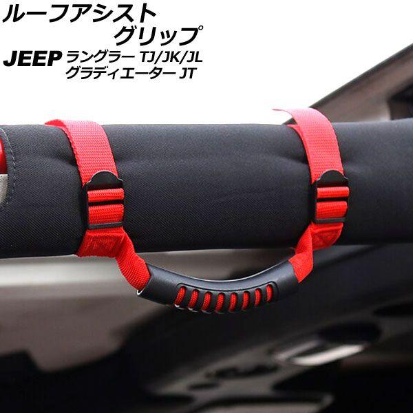 ルーフアシストグリップ ジープ ラングラー TJ/JK/JL 1996年11月〜 レッド オックスフォード素材/ABS製 AP-IT2685-RD