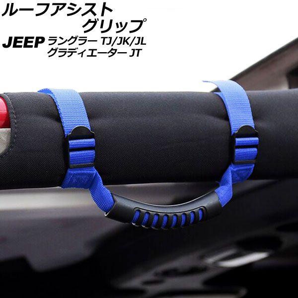 ルーフアシストグリップ ジープ ラングラー TJ/JK/JL 1996年11月〜 ブルー オックスフォード素材/ABS製 AP-IT2685-BL
