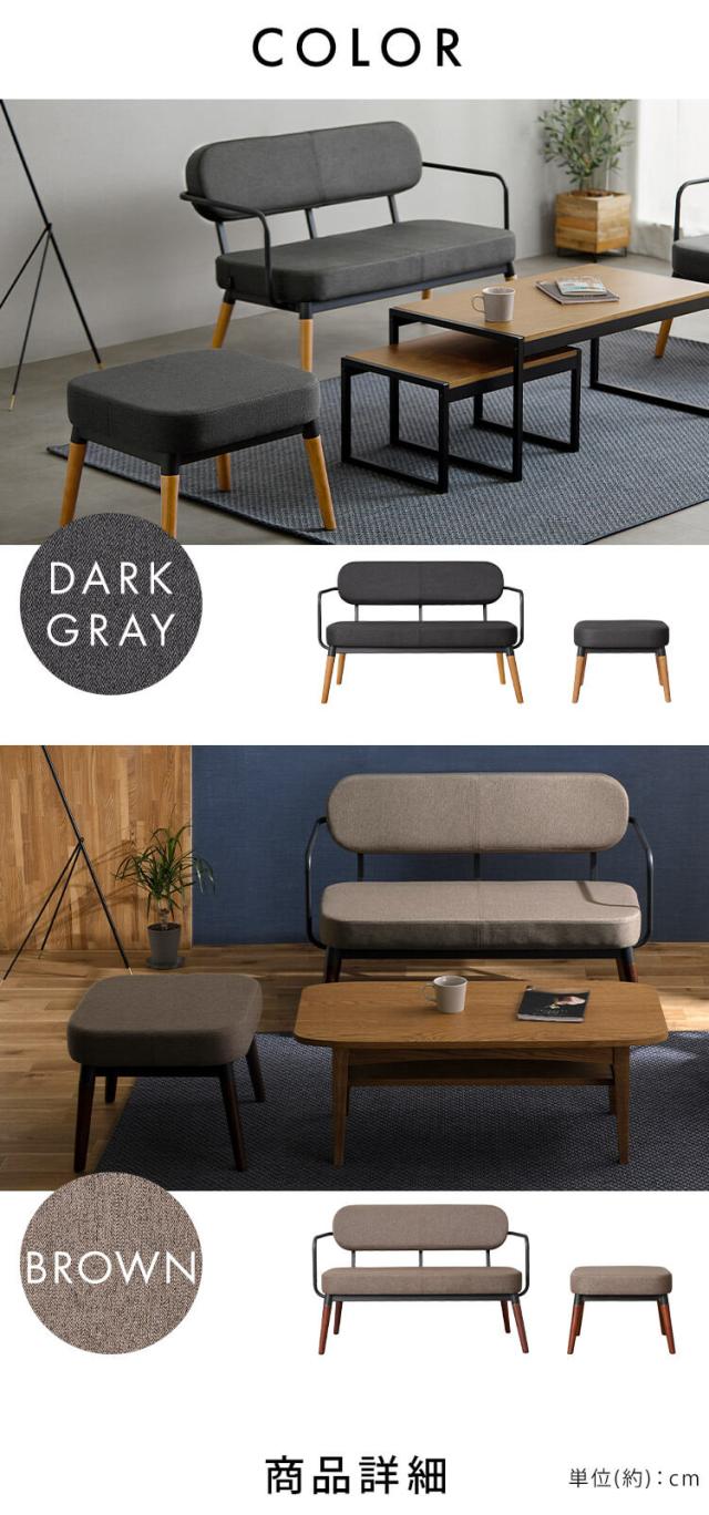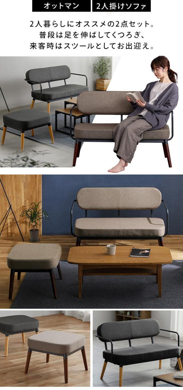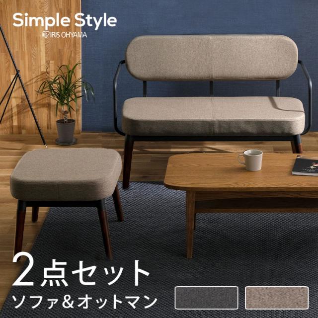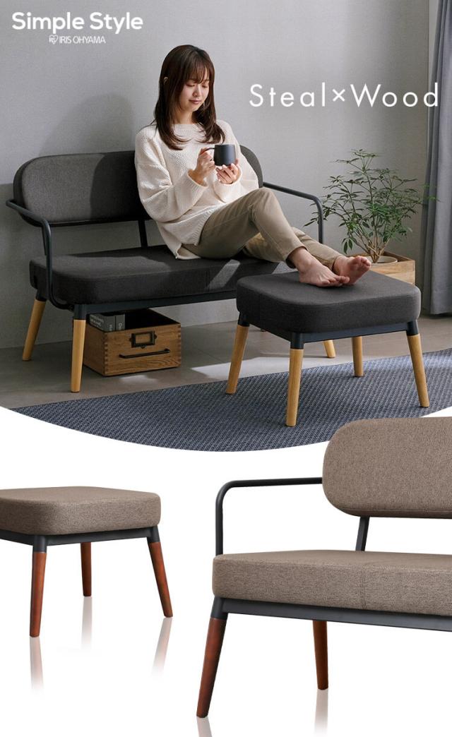 【2点セット】2人掛けスチールフレームソファ オットマン セット MSS ダークグレー ブラウン ソファ コンパクト オットマン付き ソファー 二人掛け オットマン スツール 足置き 肘掛け 背もたれ 布製 布張り 金属フレーム 木製 脚 アイリスオーヤマ 送料無料