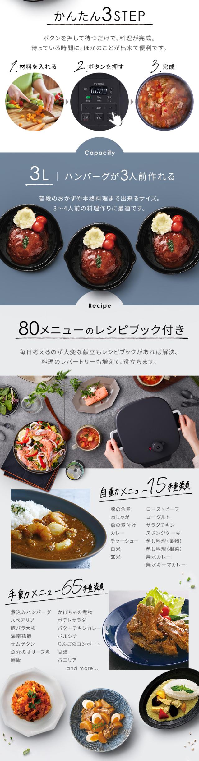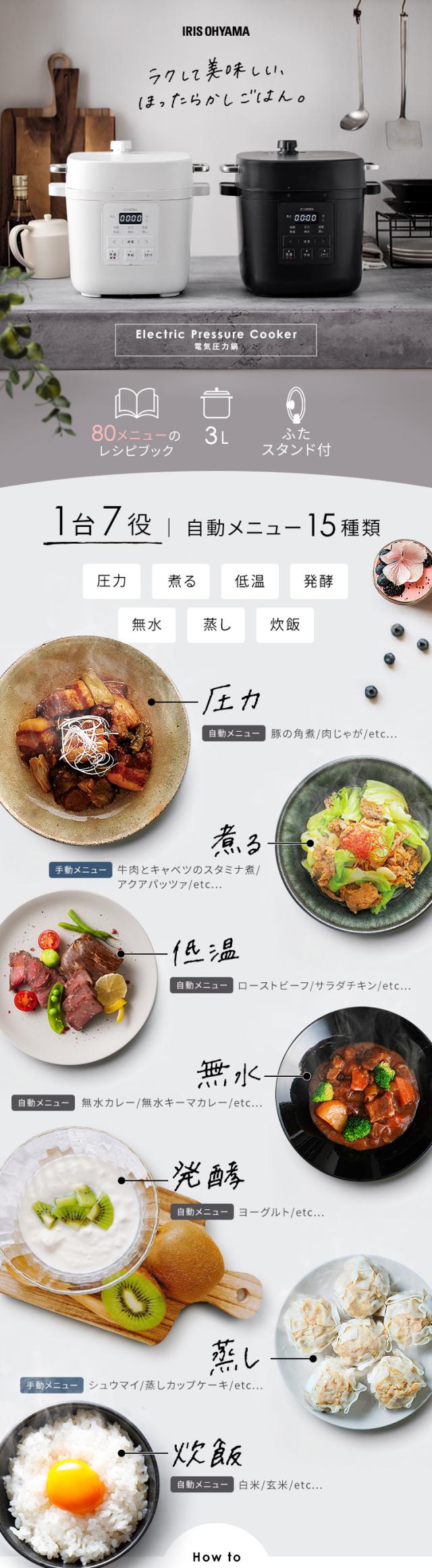 圧力鍋 電気圧力鍋 3L アイリスオーヤマ 電気圧力鍋 3L PMPC-REMA3 ダークグレー オフホワイト 全2色 レシピブック付き 新生活 電気圧力鍋 圧力鍋 3L 圧力調理 煮る 低温 蒸し 発酵 炊飯 無水 予約調理 保温 ふたスタンド付き 送料無料 母の日