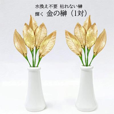 ●(郵送) 金運 開運 運気 上昇?! こんなのなかった! 水換え不要 枯れない 榊 金の榊(1対)[ GSK-001 ] A&K 送料無料 75686
