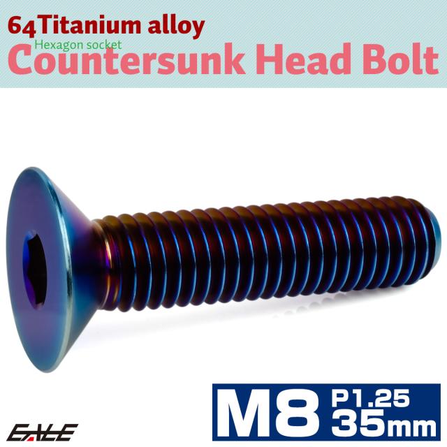 チタンボルト M8×35mm P1.25 皿ボルト 六角穴 皿 キャップボルト 焼きチタンカラー JA1616