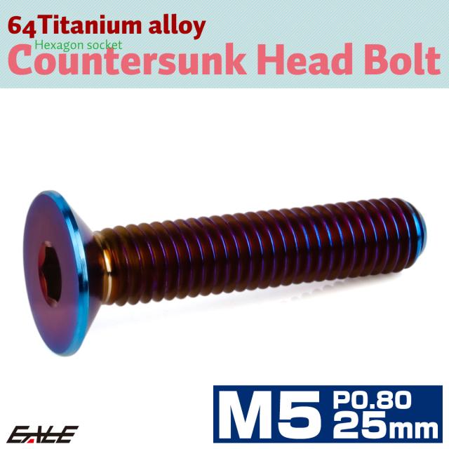 チタンボルト M5×25mm P0.8 皿ボルト 六角穴 皿 キャップボルト 焼きチタンカラー JA1518