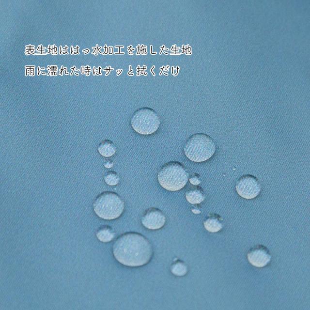 *生地には、はっ水加工をしていますが、永久的なものではありません。ご使用を繰り返すうちに摩擦などで撥水性が落ちくることがあります。その際は、市販の布製防水スプレーを表面から塗布することをおすすめします。