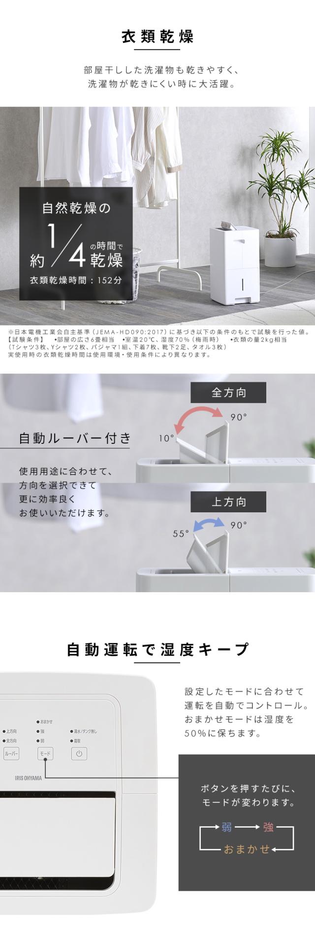 除湿機 コンプレッサー アイリスオーヤマ コンパクト 7L/日 ホワイト 送料無料 コンプレッサー除湿機 衣類乾燥除湿機 除湿器 乾燥機 乾燥器 衣類乾燥機 コンプレッサー式 部屋干し 7L 洗濯物 衣類 タイマー【kdn】 安心延長保証対象