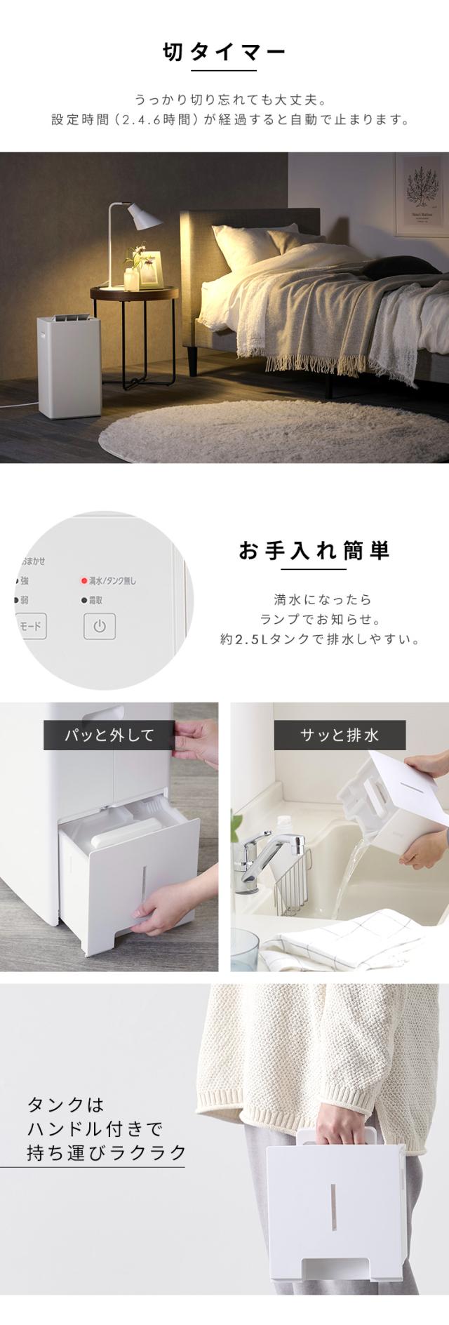 - コンパクトでデザイン性も良かったです。! 部屋の湿度も下がりました。
