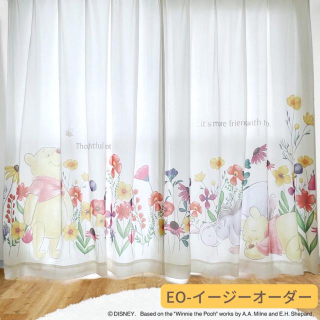 カーテン EO-くまのプーさんフラワー 見ににくい UVカットレースカーテン 2枚入 【幅100cm × 丈148~218cm】/ディズニー