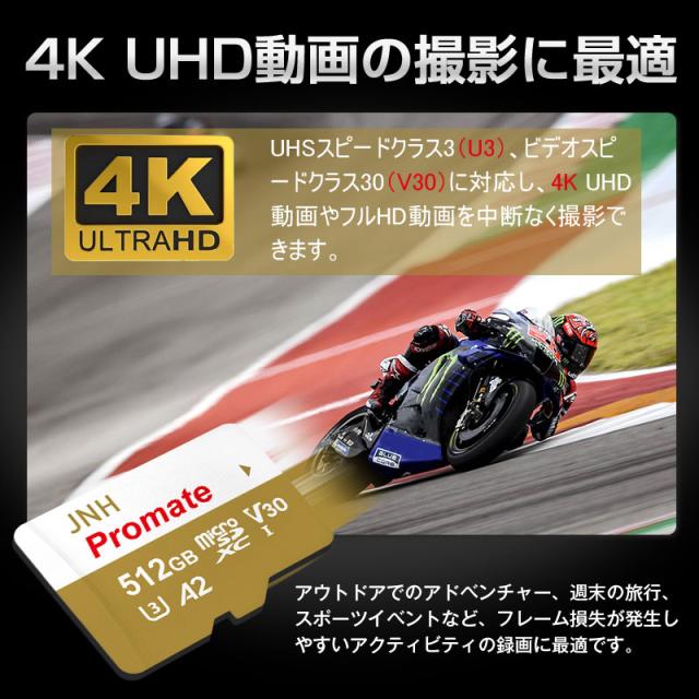 microSDXCカード 512GB R:170MB/s W:160MB/s UHS-I DDR200モード U3 V30 4K Ultra HD A2対応 JNH Promate 国内正規品 5年保証 Nintendo Switch動作確認済 micro SDXC 任天堂スイッチ対応 microSDXCカード MicroSDメモリーカード 512ギガ マイクロSDカード