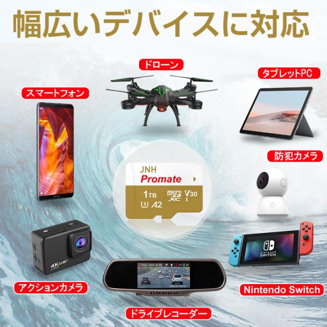 microSDXCカード 1TB R:180MB/s W:160MB/s UHS-I DDR200モード U3 V30 4K Ultra HD アプリ最適化A2対応 JNH Promate 国内正規品 5年保証 microSDXCカード MicroSDメモリーカード MICROSDカード マイクロSDカード micro SDXC Nintendo Switch動作確認済