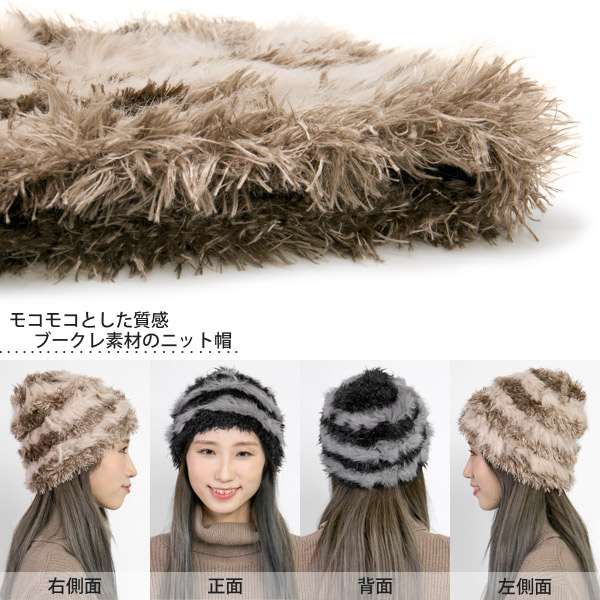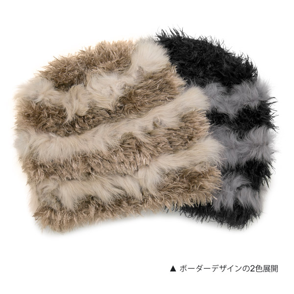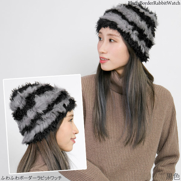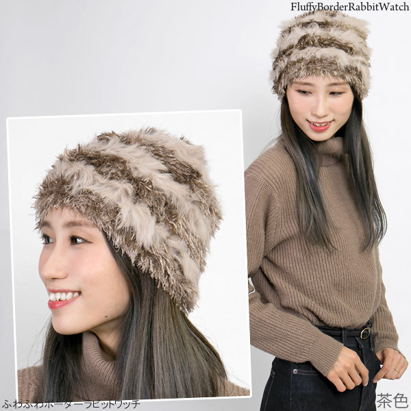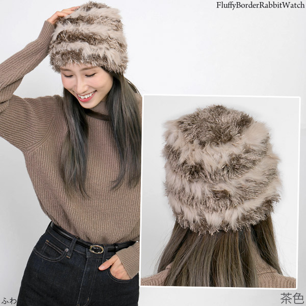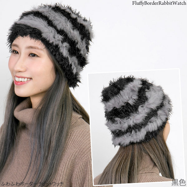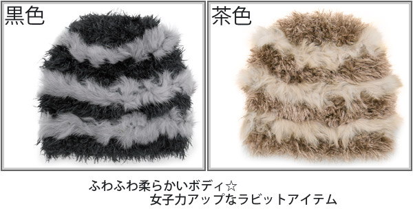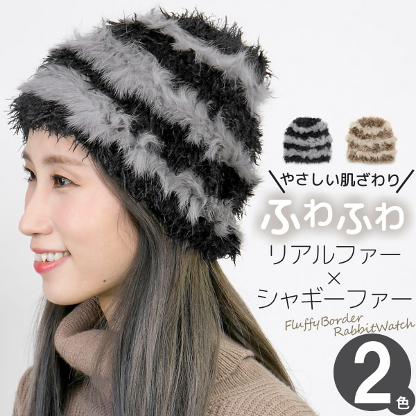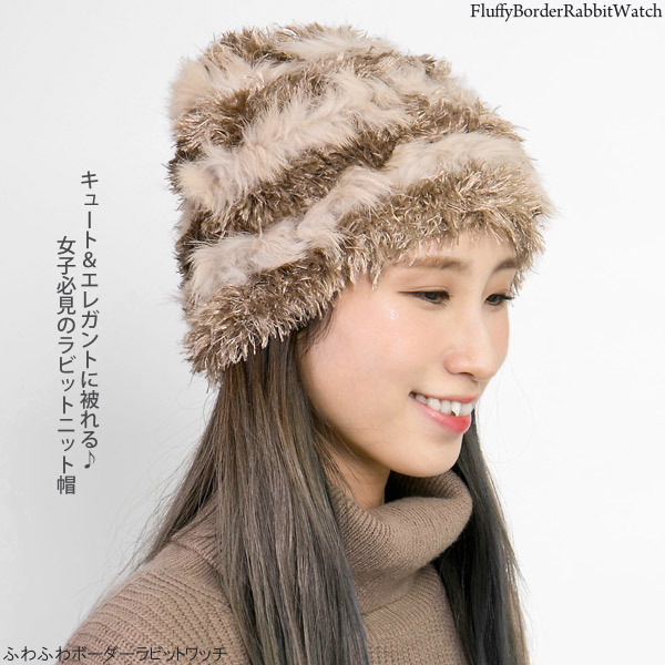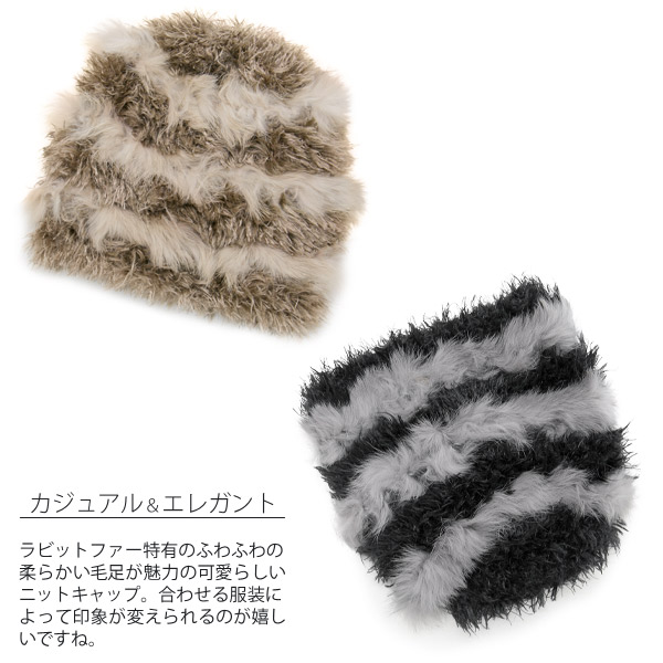ニット帽 レディース [メール便可] 帽子 秋冬 ファー / ふわふわボーダーラビットワッチ