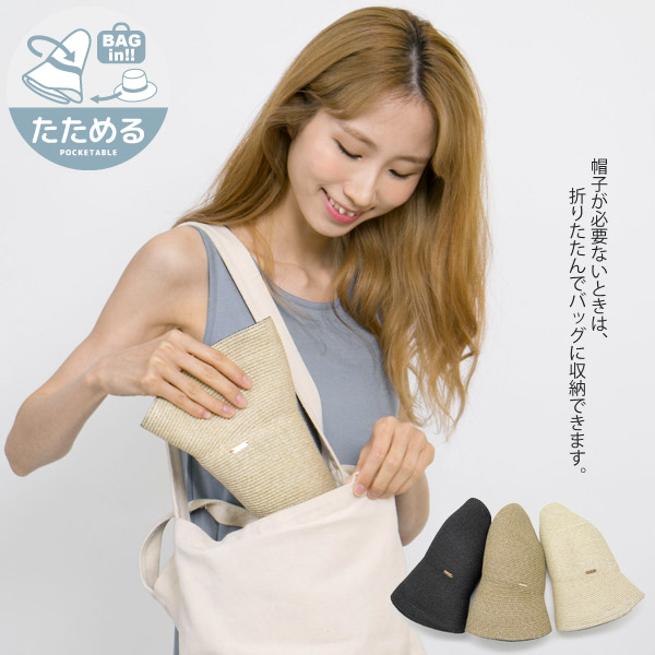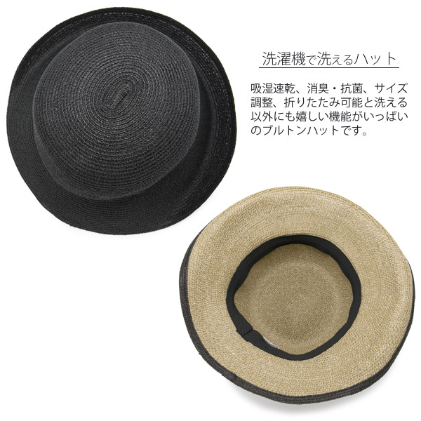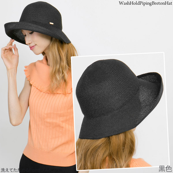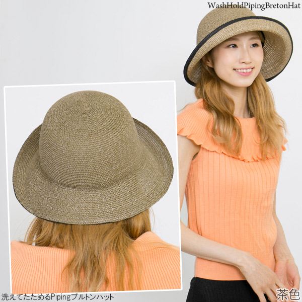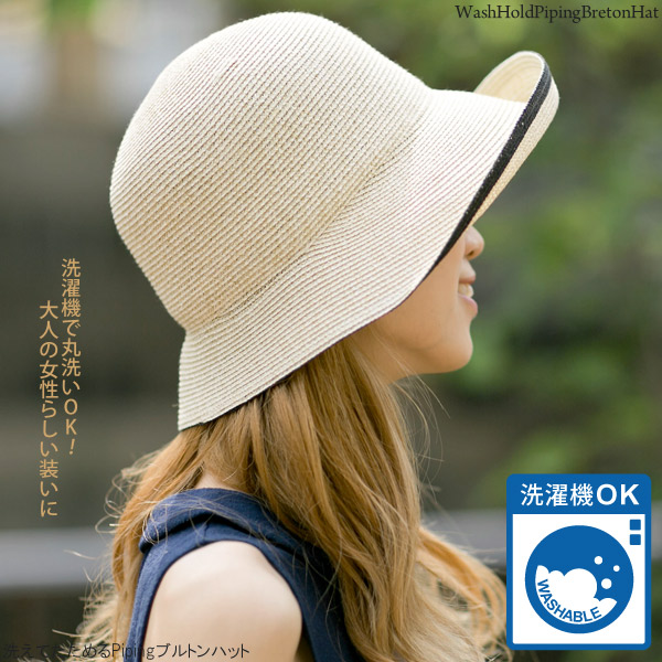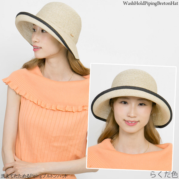 洗えるハット レディース [メール便可] 麦わら帽子 夏春 折りたたみ 吸水速乾 抗菌 消臭 / 洗えてたためるPipingブルトンハット