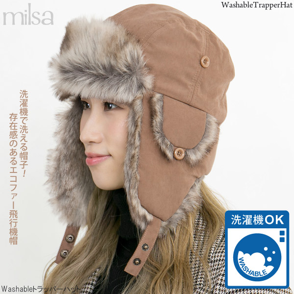 アビエイターハット レディース [メール便可] 帽子 秋冬 耳あて付き 防寒 フライトキャップ 飛行機帽 / Washableトラッパーハット