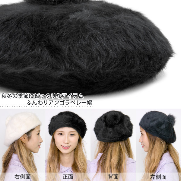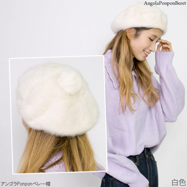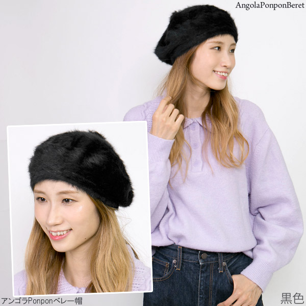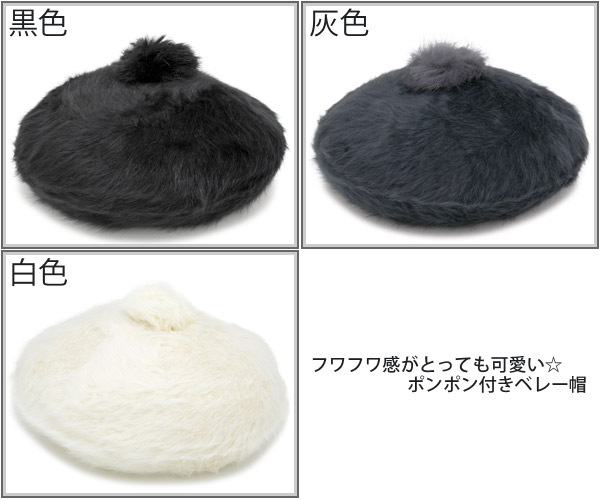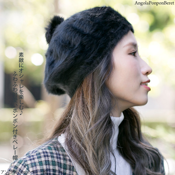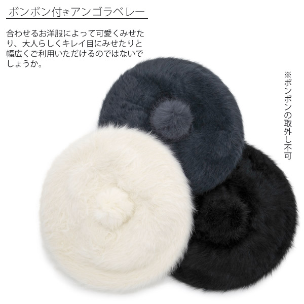ベレー帽 レディース [メール便可] 帽子 ぽんぽん ボンボン 秋冬 / アンゴラPonponベレー帽