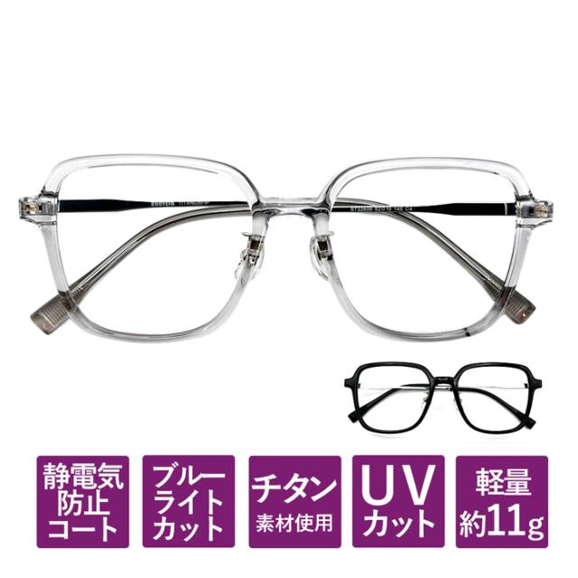 度数+0.25刻みで選べる!老眼鏡 ブルーライトカット シニアグラス おしゃれ レディース メンズ PCメガネ ブラック クリア ウェリントン 22609