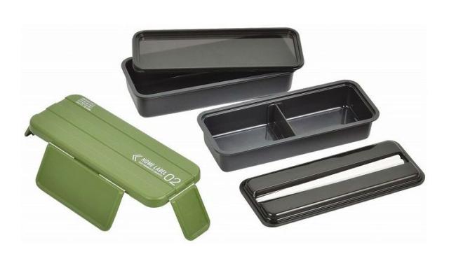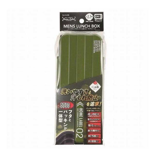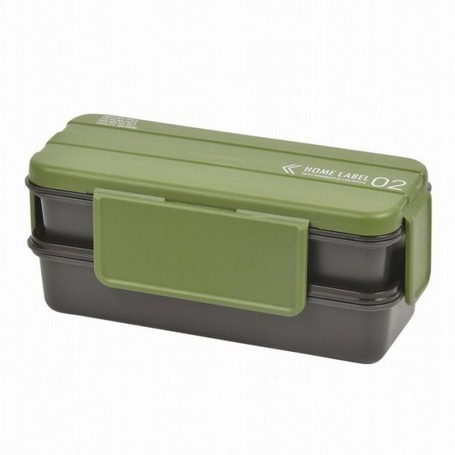 ホームレーベル メンズランチボックス2段 カーキグリーン パール金属 キッチン用品 食器 グラス タンブラー 行楽 調理 家事 料理