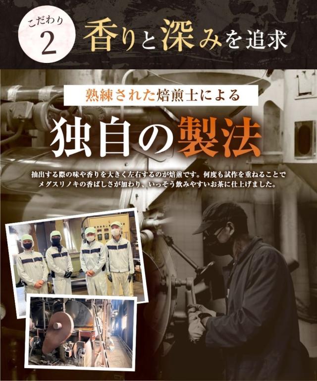こだわりの手法でクセがなく体に優しいお茶に仕上げました。 ほっとひと息つく自分時間に木の香りとほのかな甘さをお楽しみください。 読書やパソコン・スマートフォン・タブレットをよく使う方におすすめです。 |