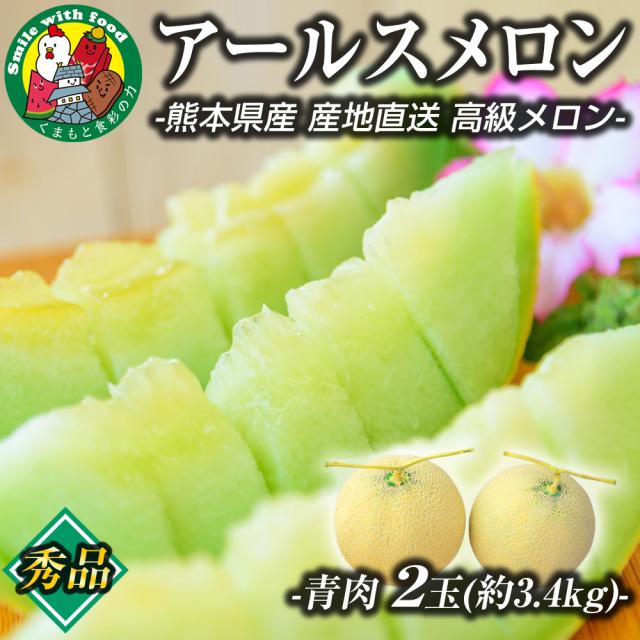 熊本県産 “アールスメロン” 秀品 (青肉 2玉 約3.4kg) 産地直送 高級 完熟 ギフト プレゼント用 贈答用 お中元 お祝い お見舞い 果物 【バイヤー推奨商品】