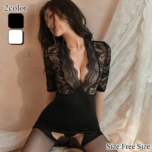 【グラシア】 コスプレ 衣装 コスチューム 仮装 セクシー キュート コス OL タイト 胸元 大人 ボディコン 透け感 レース ブラック ホワイト フリーサイズ
