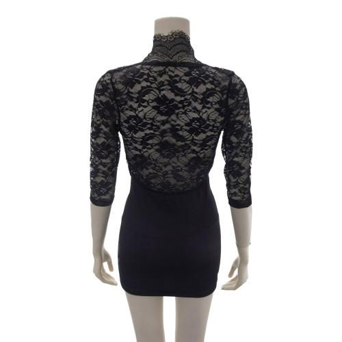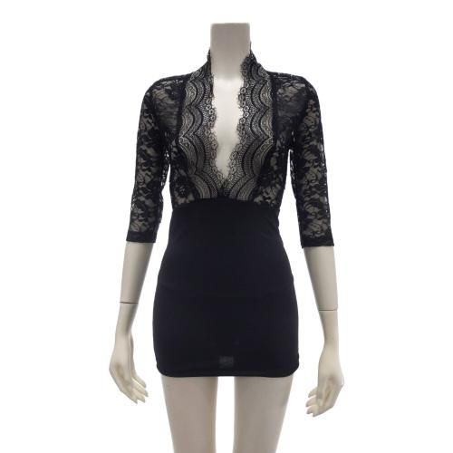 レースを贅沢に仕立て胸元がざっくりと開いたトップス部分と、ピタピタのタイトスカートをドッキングさせたセクシーな秘書風デザインのボディコンシャスワンピ。