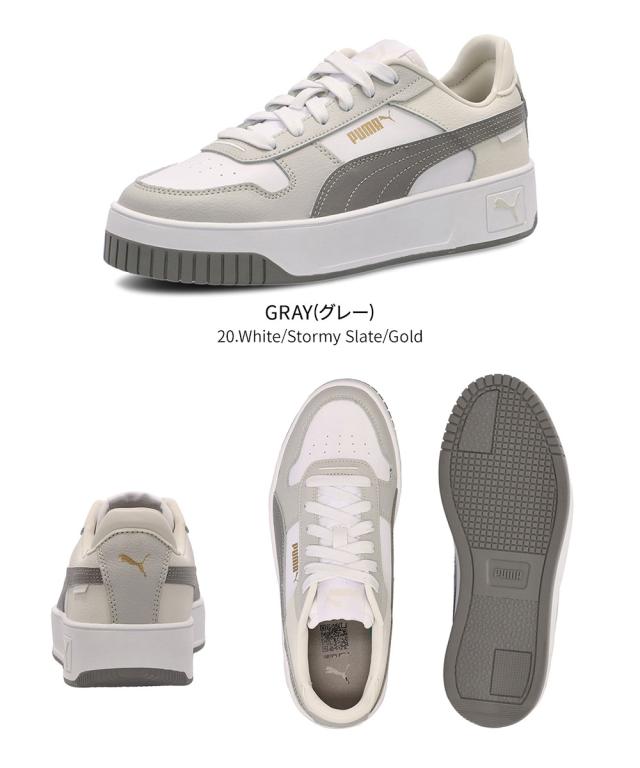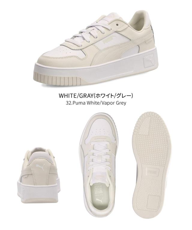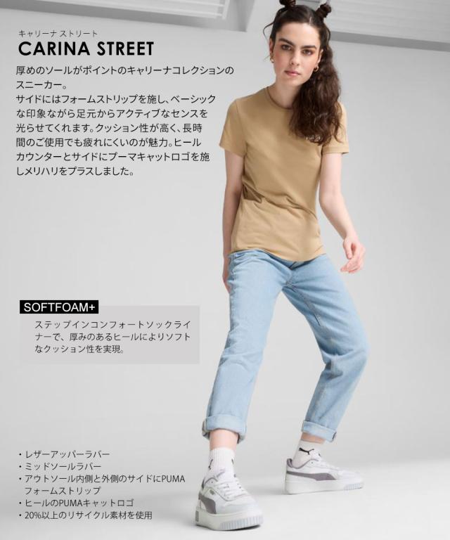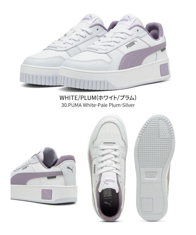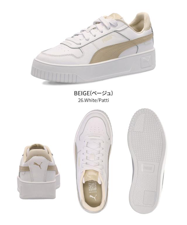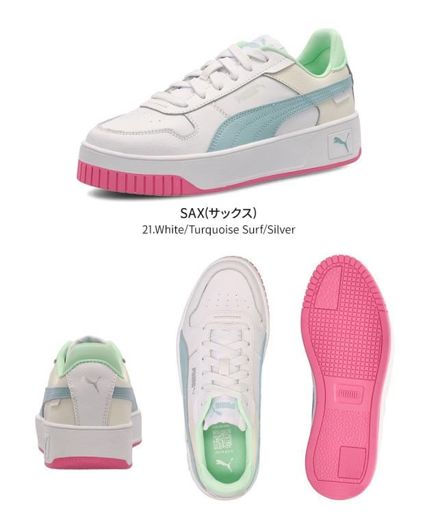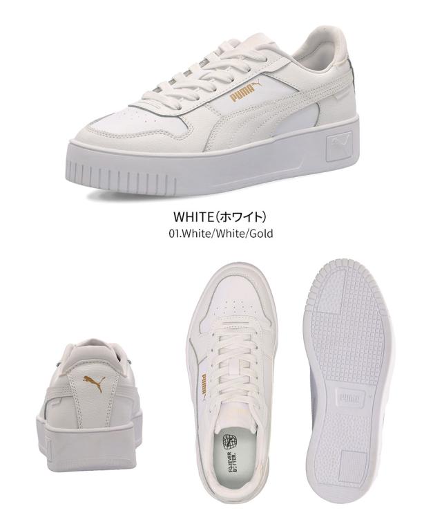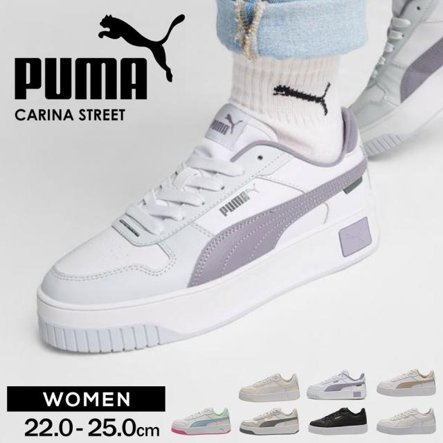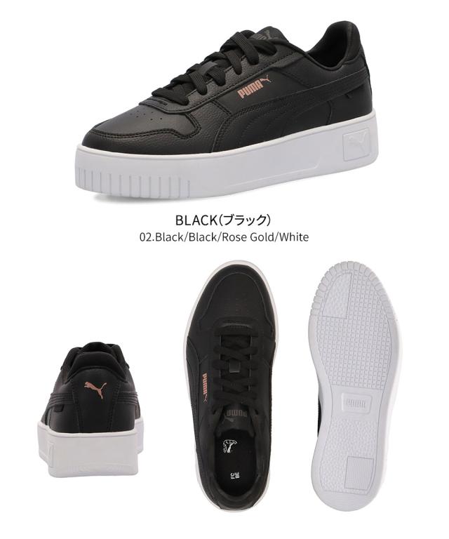 プーマ スニーカー レディース 厚底 ウィメンズ キャリーナ ストリート ローカット 白靴 コートスニーカー テニス ホワイトスニーカー 脚長効果 通学 紐 プーマキャット ロゴ ホワイト ブラック ローズ PUMA Carina Street 389390