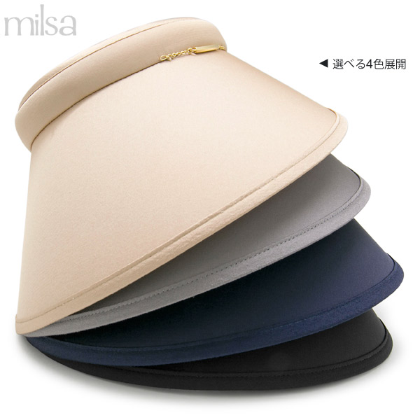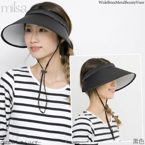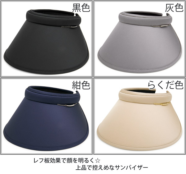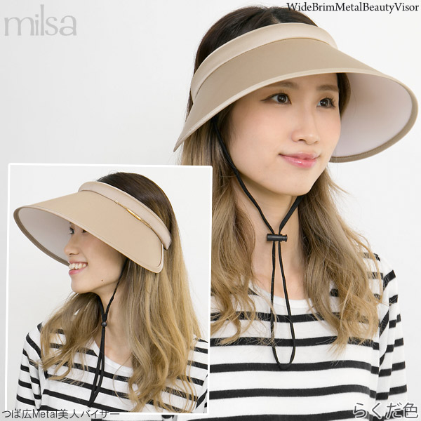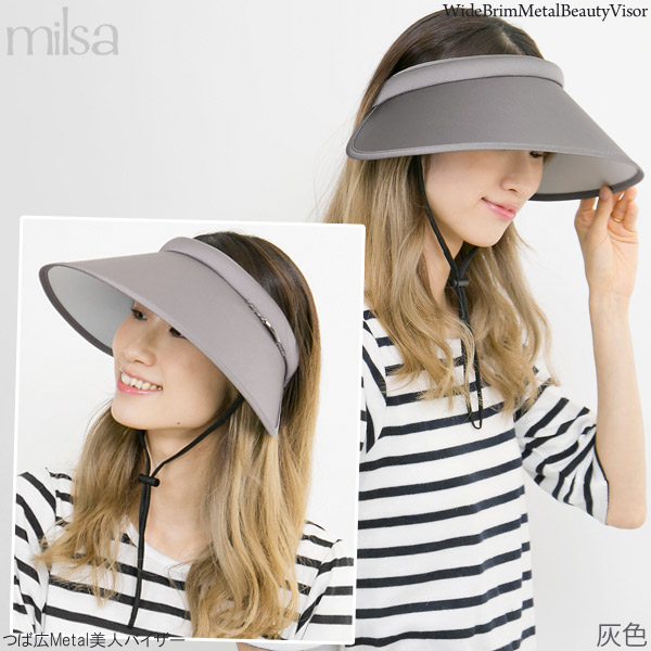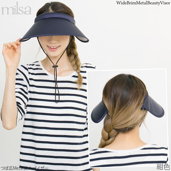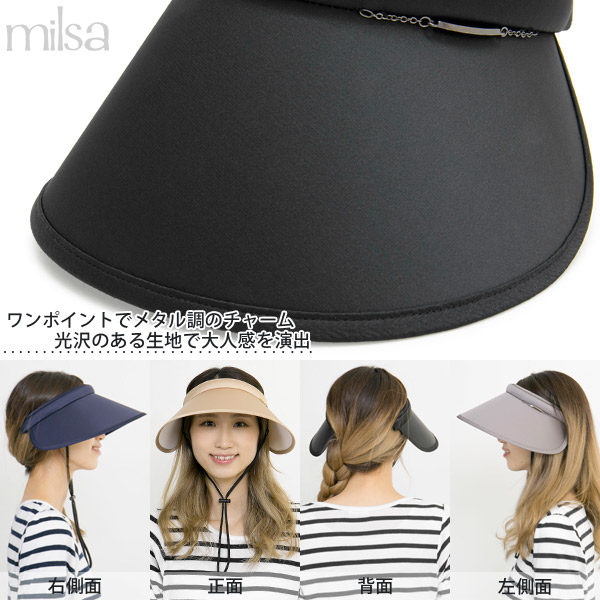 サンバイザー レディース 日焼け防止 つば広 帽子 春夏 あご紐 UV 紫外線対策 / つば広Metal美人バイザー
