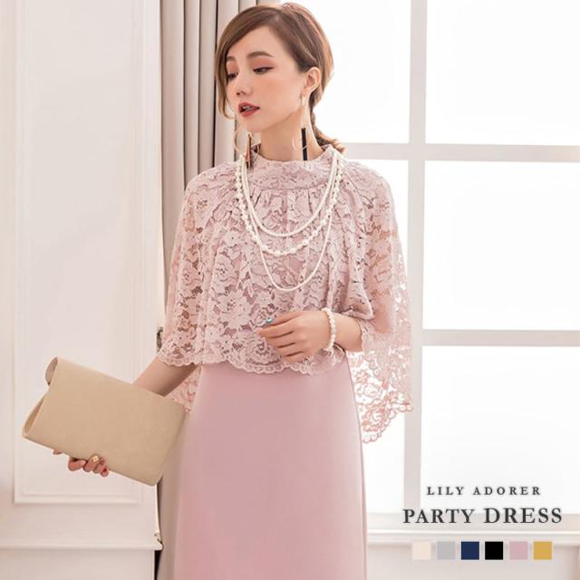 体型カバーとエレガント見せを両立するレースケープ風ワンピース