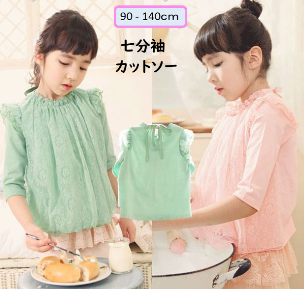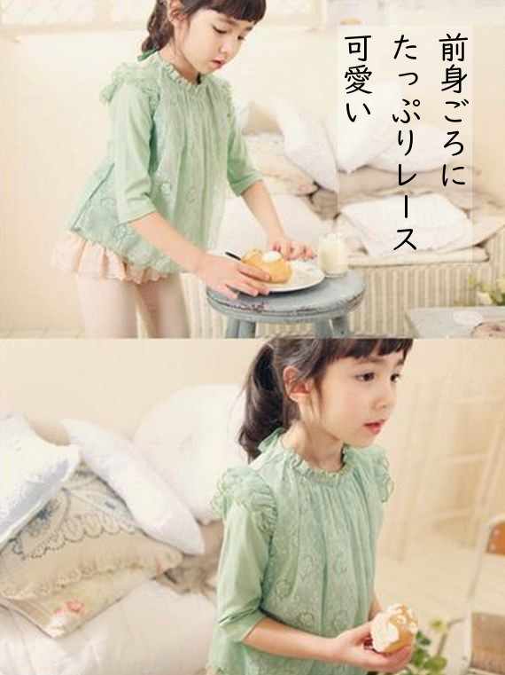 チュール チュニック風 長袖 キッズ カットソー 夏秋 子供服 トップス 子供 Tシャツ カットソー 女の子 レース ガーリー 子供服 カットソー フリル 子ども