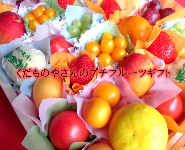 旬のフルーツをプチギフトにしました。少しずつ色んな果物を食べられるのでギフトに人気です。