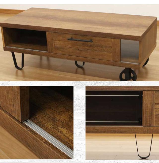 センターテーブル テーブル リビングテーブル コーヒーテーブル 机 テーブル 幅120 ブラウン スライド扉 ヴィンテージ インダストリアル ミッドセンチュリー(代引不可)【送料無料】