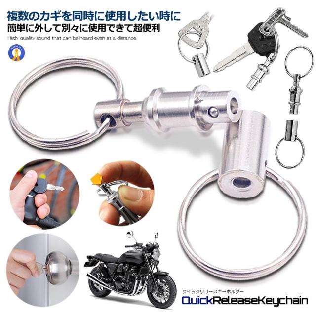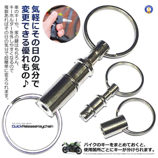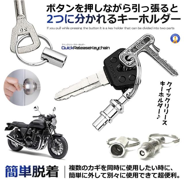 クイックリリースキーホルダー2個セット クイックリリース キーホルダー カギ 鍵 かぎ 分割 分離 着脱式 簡単分離 簡単脱着 バイク 車 家 ボタン式 2-QUIRIKEY