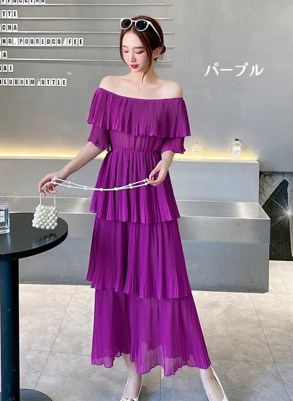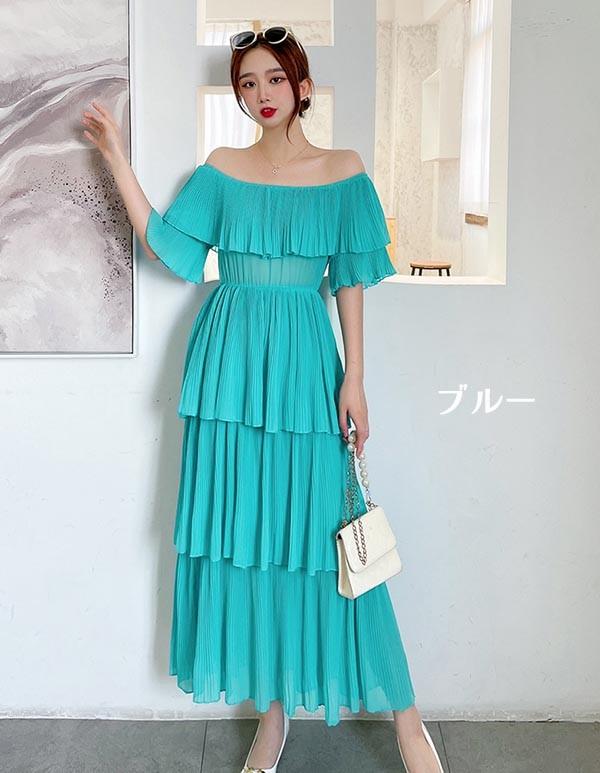 【レビュー投稿で+5%還元】オフショルダー ティアードワンピース ハワイアン アロハ ワンピース 無地 マキシ ロング丈 肩出し リゾートワンピ 夏ワンピ マキシワンピ レディース ファッション リゾートワンピース 水色 黒 赤 黄色い 緑 紫 ピンク オレンジ 沖縄 母の日