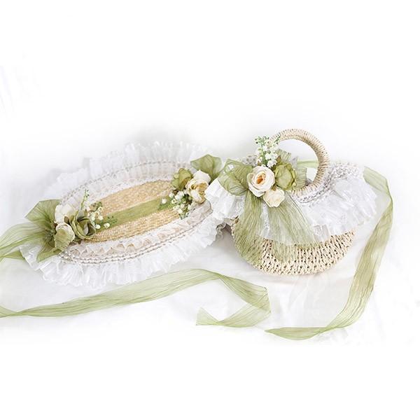 【レビュー投稿で+5%還元】ストローハット クラシカルハット ロリィタ ロリータボンネット かごバッグ ロリータハンドバッグ レース帽 コスプレ 女の子 帽子 ヘアアクセサリー ヘッドドレス 茶話会 パーティー 麦わら 森ガール 甘ロリ 可愛い蝶結び 花柄 髪飾り 萌え系