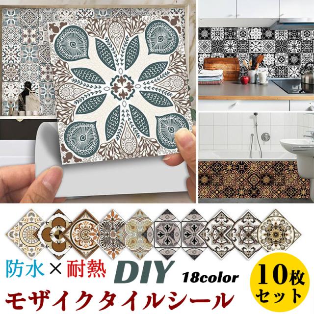 タイルシール 壁紙 タイル シール 10枚セット モザイクタイル柄 ステッカー リメイクシール DIY キッチン 水回り 洗面所