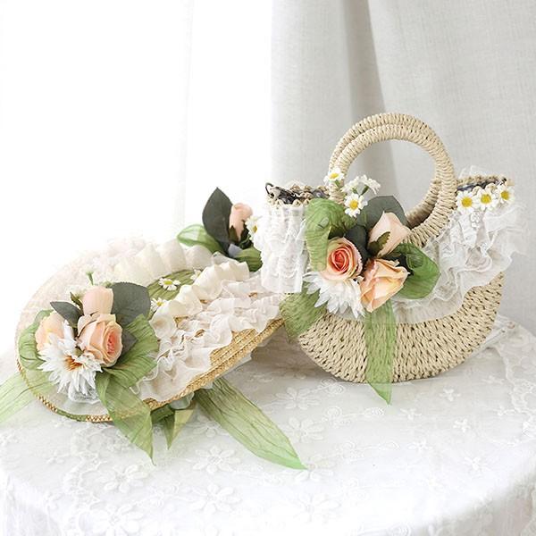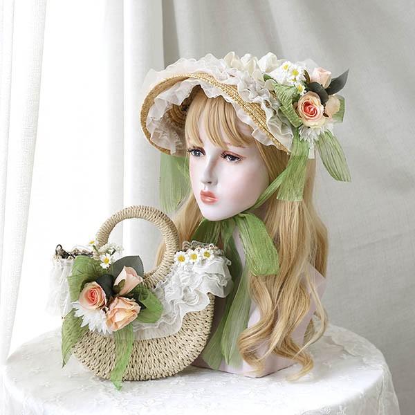 【レビュー投稿で+5%還元】ストローハット クラシカルハット ロリィタ ロリータボンネット かごバッグ ロリータハンドバッグ レース帽 コスプレ 女の子 帽子 ヘアアクセサリー ヘッドドレス 茶話会 パーティー 麦わら 森ガール 甘ロリ 可愛い 蝶結び 花柄 髪飾り 萌え系
