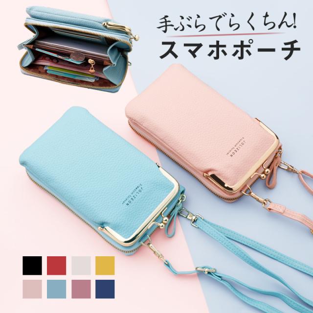 スマホポーチ スマホポシェット レディース ショルダーバッグ がま口 携帯電話バッグ 縦型 財布 カードケース 軽量 肩掛け スマ