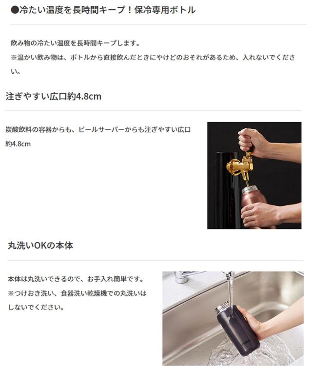 ■冷たい温度を長時間キープ!保冷専用ボトル
