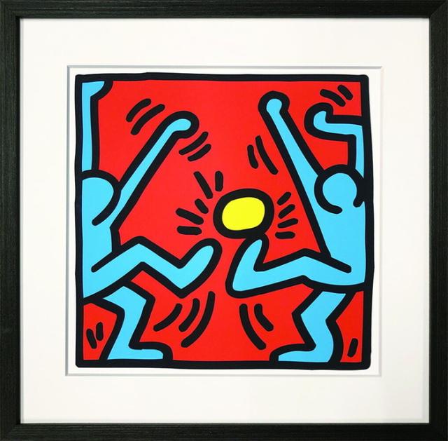 キース・ヘリング アートポスター アメリカンポップアート アメリカンヴィンテージ 壁掛け用 キース・ヘリング 1958年生まれ。(1958〜1990)アンディ・ウォーホルやジャン・ミシェル・バスキアなどとともにアメリカ、ポップ・アートを牽引する代表的なアーティスト。1890年代、ニューヨークの地下鉄構内で使用されていない広告板に描いたサブウェイドローイングというグラフィティ・アートがニューヨーク在住の通勤客の間で評判を呼び、そのコミカルで誰もが楽しめる落書きはヘリングの名を広めることになった。ヘリングは地下鉄を実験作品を制作するための「実験室」と見なしていたようだ。最初の重要な個展は、1978年にピッツバーグにあるアート・センターで開催された。1978年にニューヨークへ移り、スクール・オブ・ビジュアル・アーツで絵画を学ぶ。ビデオやパフォーマンとアートの可能性を探求するとともにビル・ベックリーか
