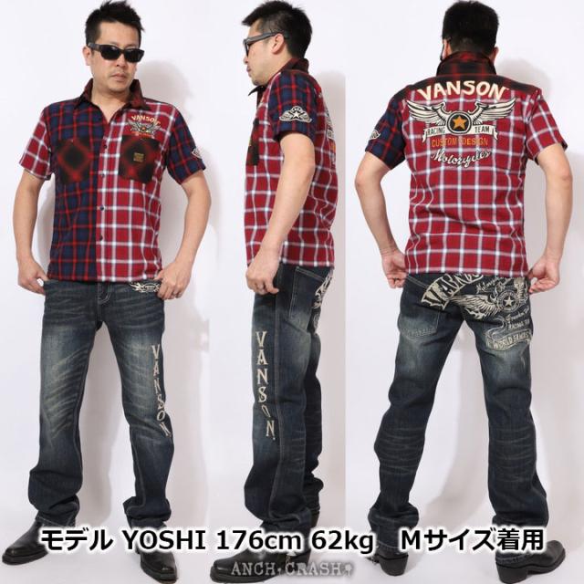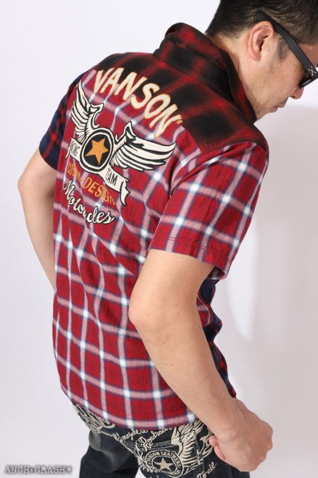 在庫限りセール SALE 30%off VANSON バンソン マルチカラー 半袖 チャックシャツ(NVSS-2303)ウィングスター 刺繍 ご奉仕品の為返品交換不可