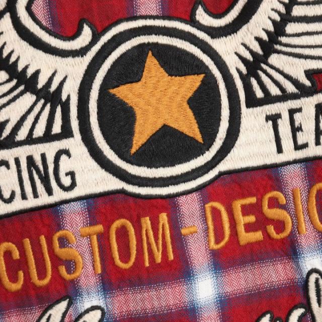 陰影の効いたオンブレチェックをベースにしたマルチカラーのチェックパターンにフライングスター刺繍を落とし込んだ、男らしい無骨な一枚!