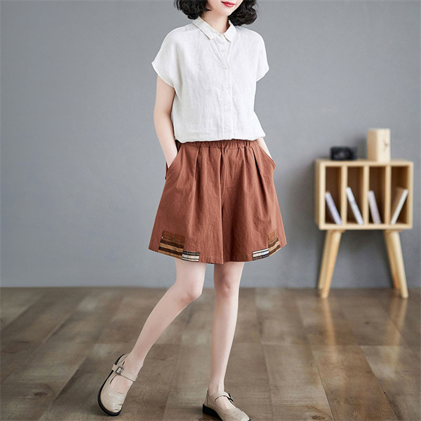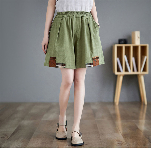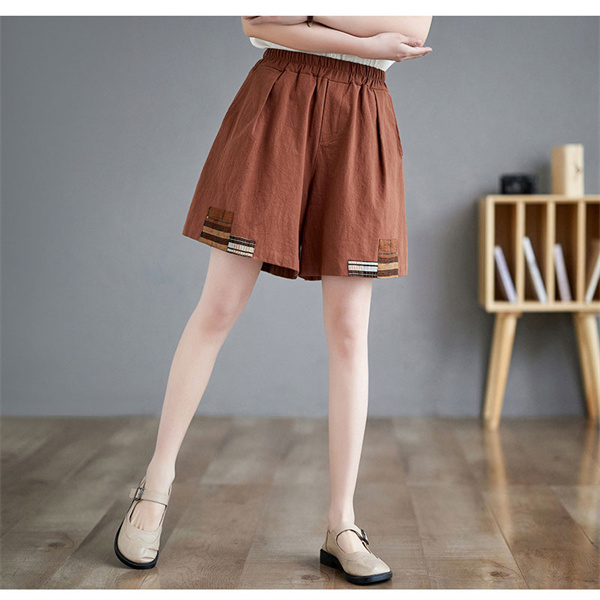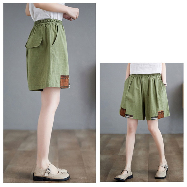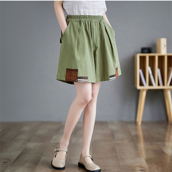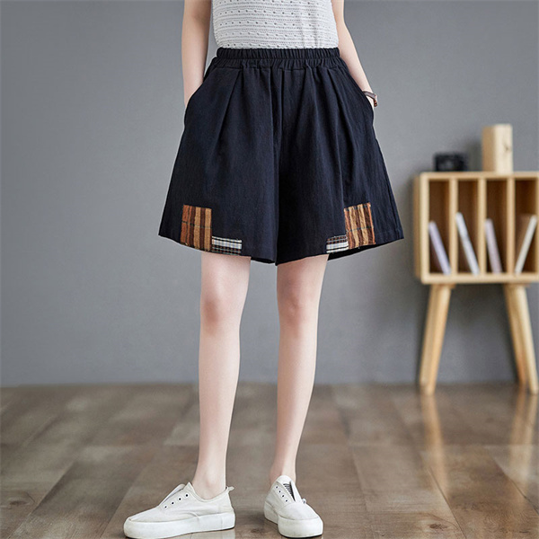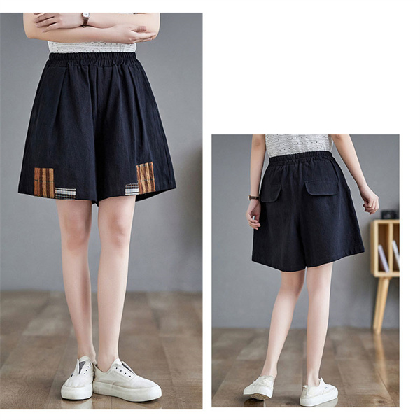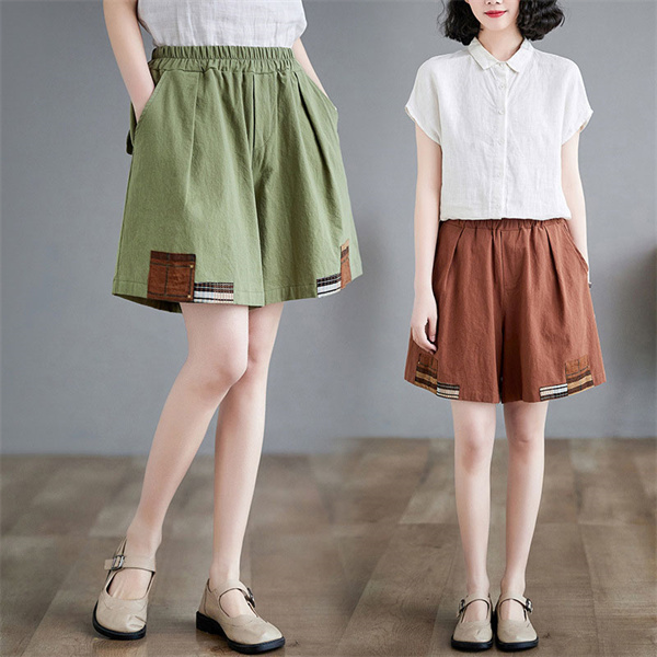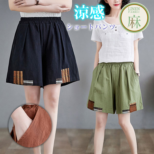 ポイント超超祭 送料無料 ショートパンツ レディース 切り替え 棉麻 パンツ ハイウェスト ショーパン パンツ 短パン パンツ フレア ショート丈 シンプル
