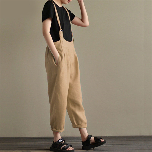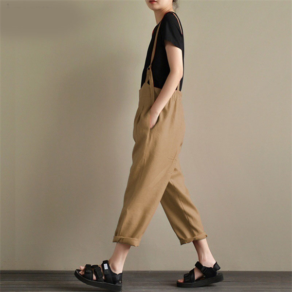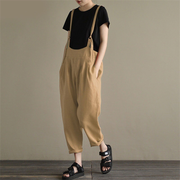 ポイント超超祭 デニムサロペット キャミ レディース 綿麻 デニム 春秋 オーバーオール ワイドパンツ シンプル ロング丈 40代 ゆったり ナチュラル 着痩せ
