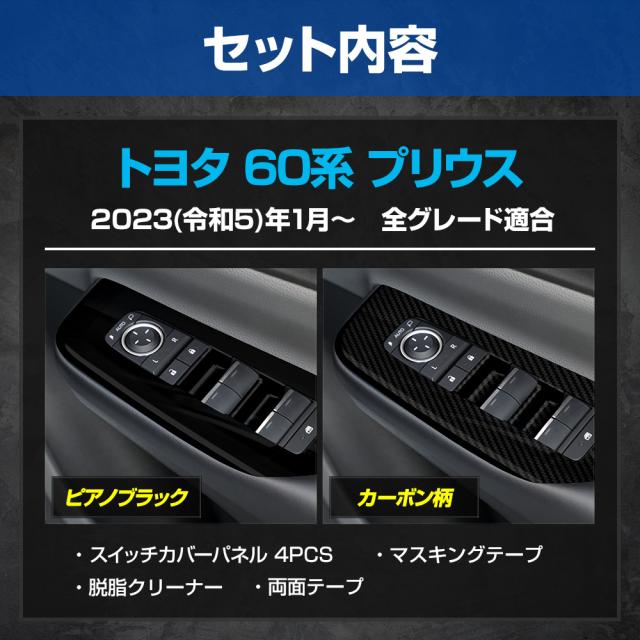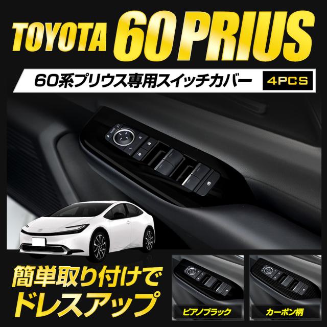 60系 プリウス 専用 ウィンドウスイッチパネルガーニッシュ 4PCS 【カーボン調/ピアノブラック】