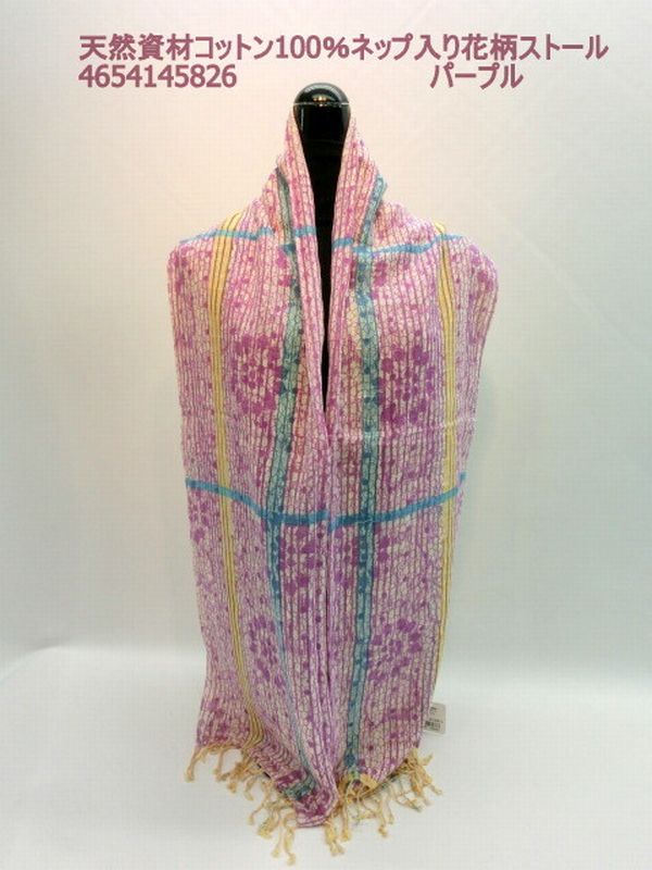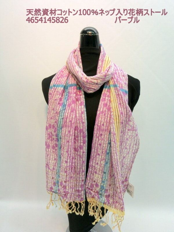 ストール ファッション小物 レディースファッション 天然資材 コットン100% ネップ入り 花柄ストール 天然素材 肌に優しい 春夏 花柄 【送料無料】