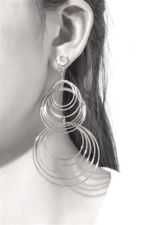 ★ 両耳用 多層 サークル ピアス ★ レディース ジュエリー フープピアス 耳飾り イヤリング スタッド オシャレ アクセサリー 2色 N66-8